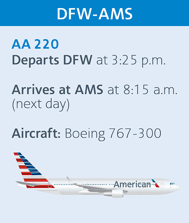 The new service between DFW and Amsterdam will be operated with a Boeing 767-300. The new service between Chicago and Barcelona will be operated using Boeing 787-8 aircraft.