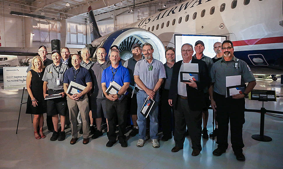 On May 17, 2017, at the Carolinas Aviation Museum in Charlotte, North Carolina — the aircraft’s home — company officials gathered to unveil the aircraft and to honor the Integrated Ops team members who made that possible: base maintenance manager Gene Jena; mechanics Brett Ebert, Paul Citriniti, Don Omer, Chris Cote, Paul O'Sullivan, Robert (Bob) Padykula, Steve Organski, Dave Tarvin, Bob Sechrist, Chris Brooks and Dave Wallace; maintenance inspector Mike Melvin; quality assurance auditor Scott Orloff; and mid-Atlantic line maintenance director Mike Annan.