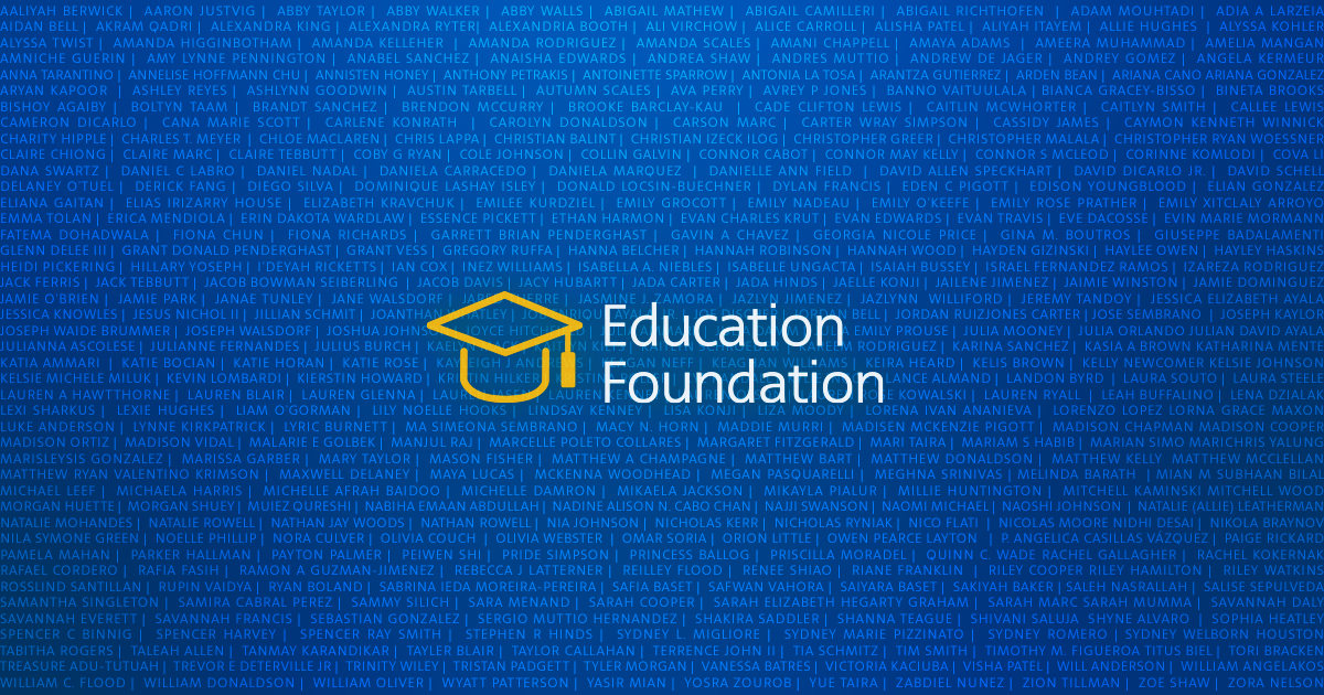 The Education Foundation received more than 1,100 applications as a part of the competitive process. Managed by third-party scholarship experts, scholarships are awarded based on financial need, academic achievement, extracurricular involvement and commitment to community service and volunteerism.