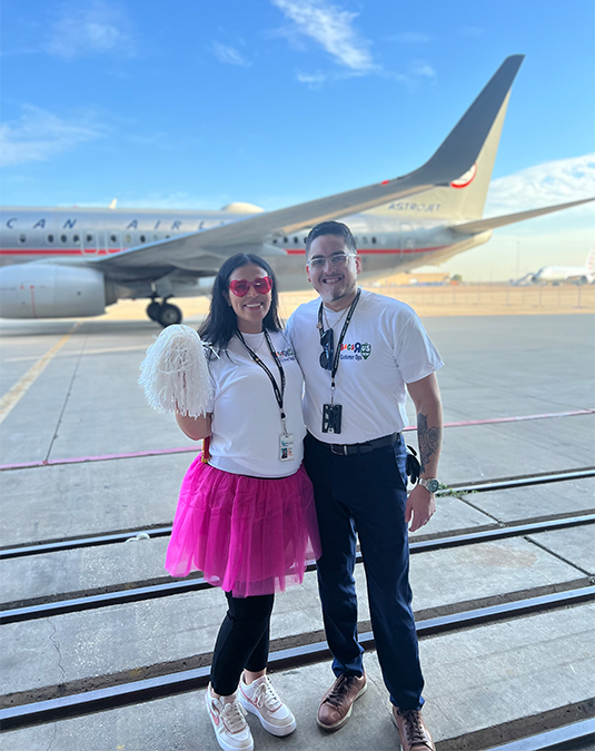 They met as managers on duty for the afternoon shift on the Dallas-Fort Worth International Airport (DFW) ramp in 2022. “We ran a pretty tight ship,” Rafael said. “There was no thought of dating.”