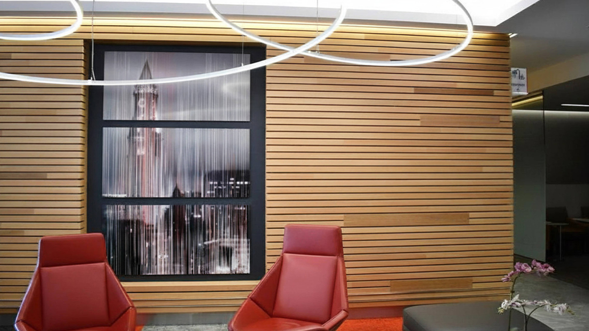 Touches of Boston’s iconic architecture are featured throughout the lounge.